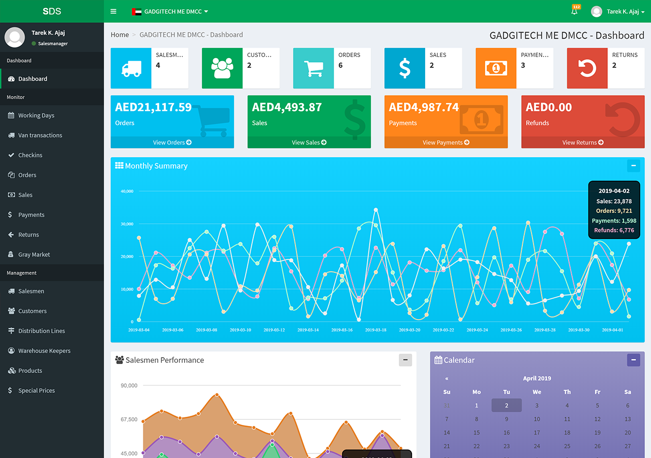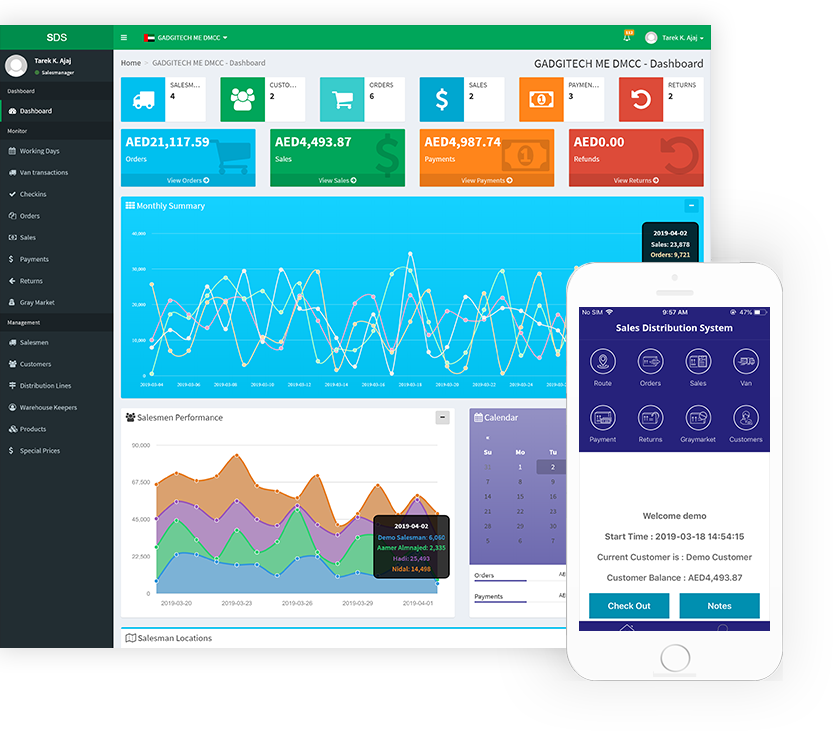Sales Distribution System (SDS) is a solution that enables enterprises to improve their distribution system, keep track of all of their business activities in a prompt and easy way, optimize their sales system through retail outlets, keep their distribution channels and sales staff under control, minimize risks, increase business performance and maximize profitability.